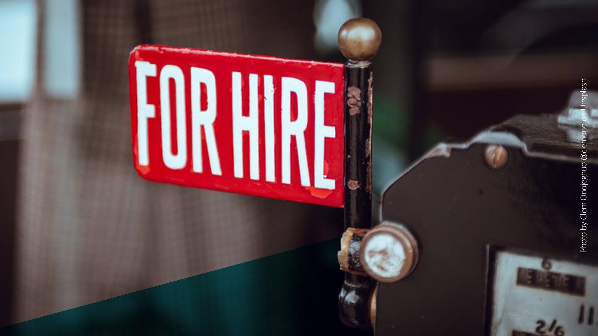 Kleines, rotes Schild mit der Aufschrift "For Hire"