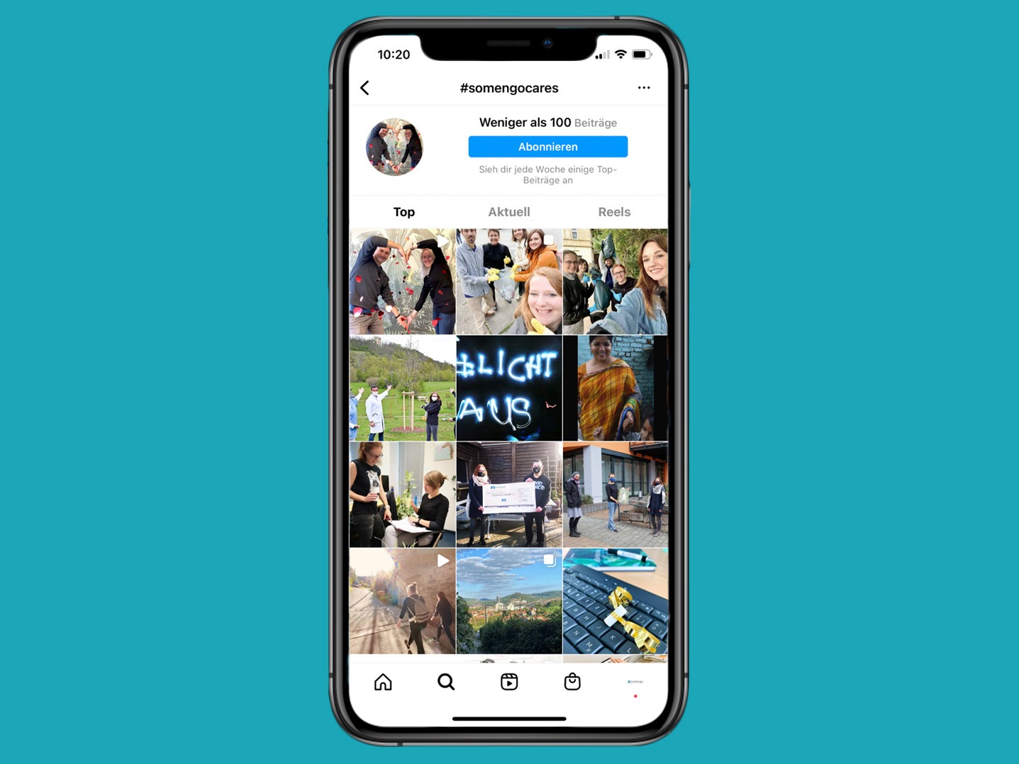 Indem Ihr Instagram Hashtags für besondere Ereignisse oder spezielle Themenbereiche erstellt, können Nutzer*innen einfacher alle Posts zu einem bestimmten Thema finden. Ein Beispiel: Unser Unternehmenshashtag ist #somengo. Sind wir unterwegs auf Dreh oder Events, nutzen wir den Hashtag #somengoontour. Für Posts zu unserem CSR Projekt Somengo Cares verwenden wir entsprechend den Hashtag #somengocares.