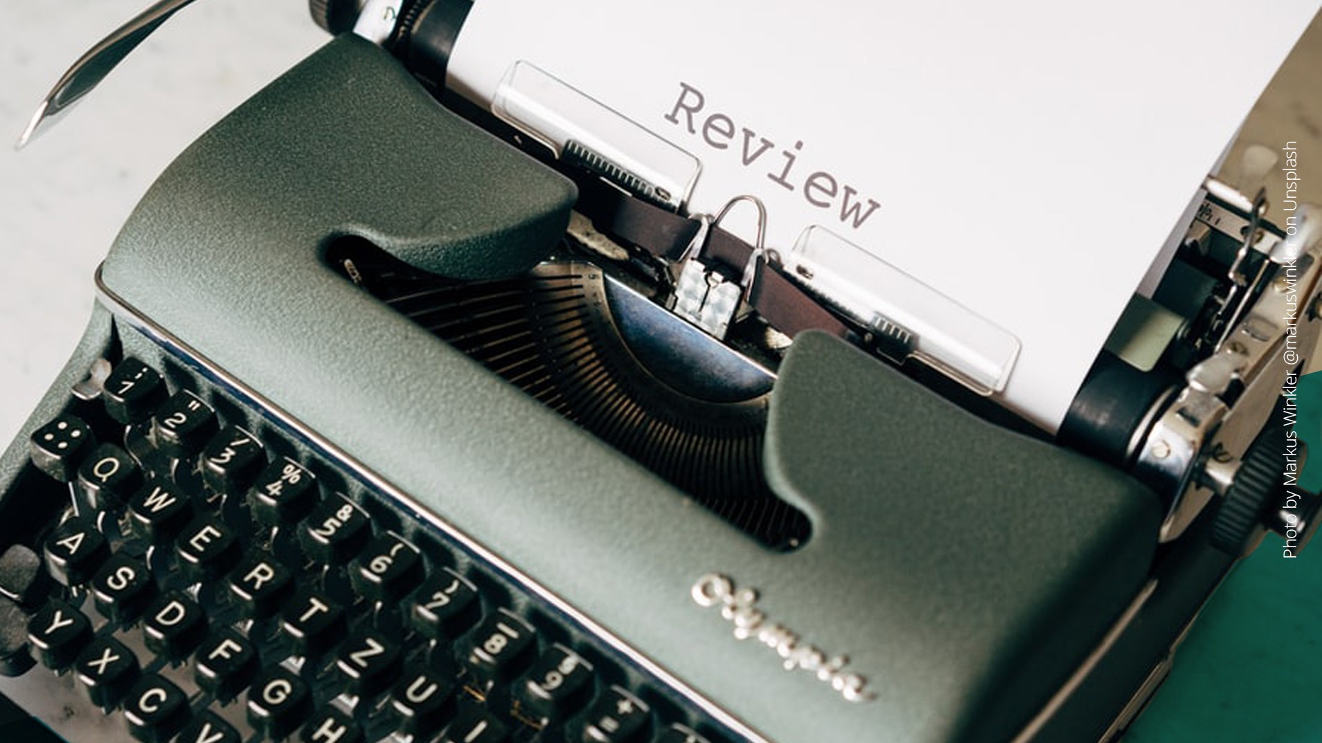 Schreibmaschine, mit der das Wort "Review" getippt wird