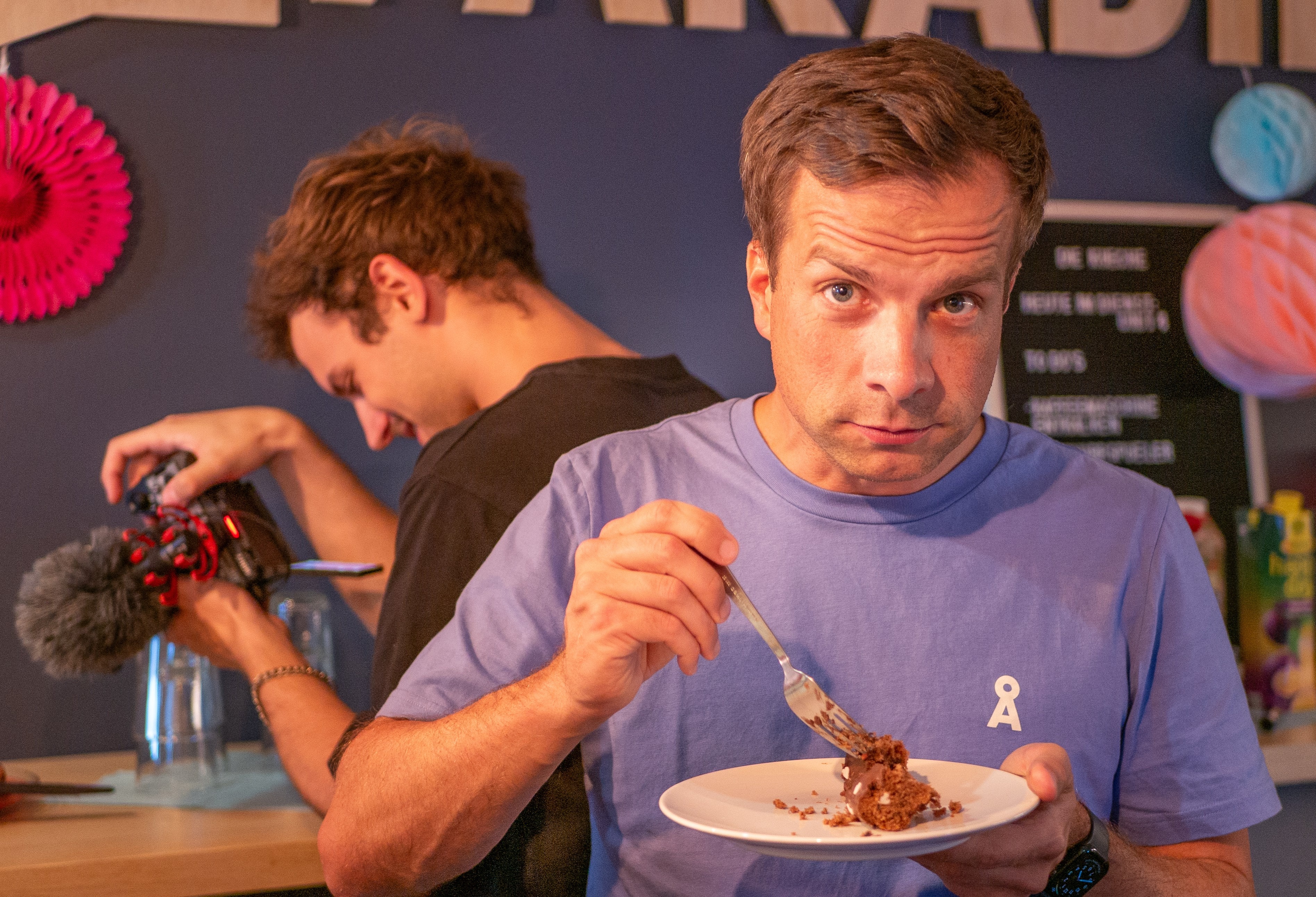 Chef der Somengo isst Kuchen